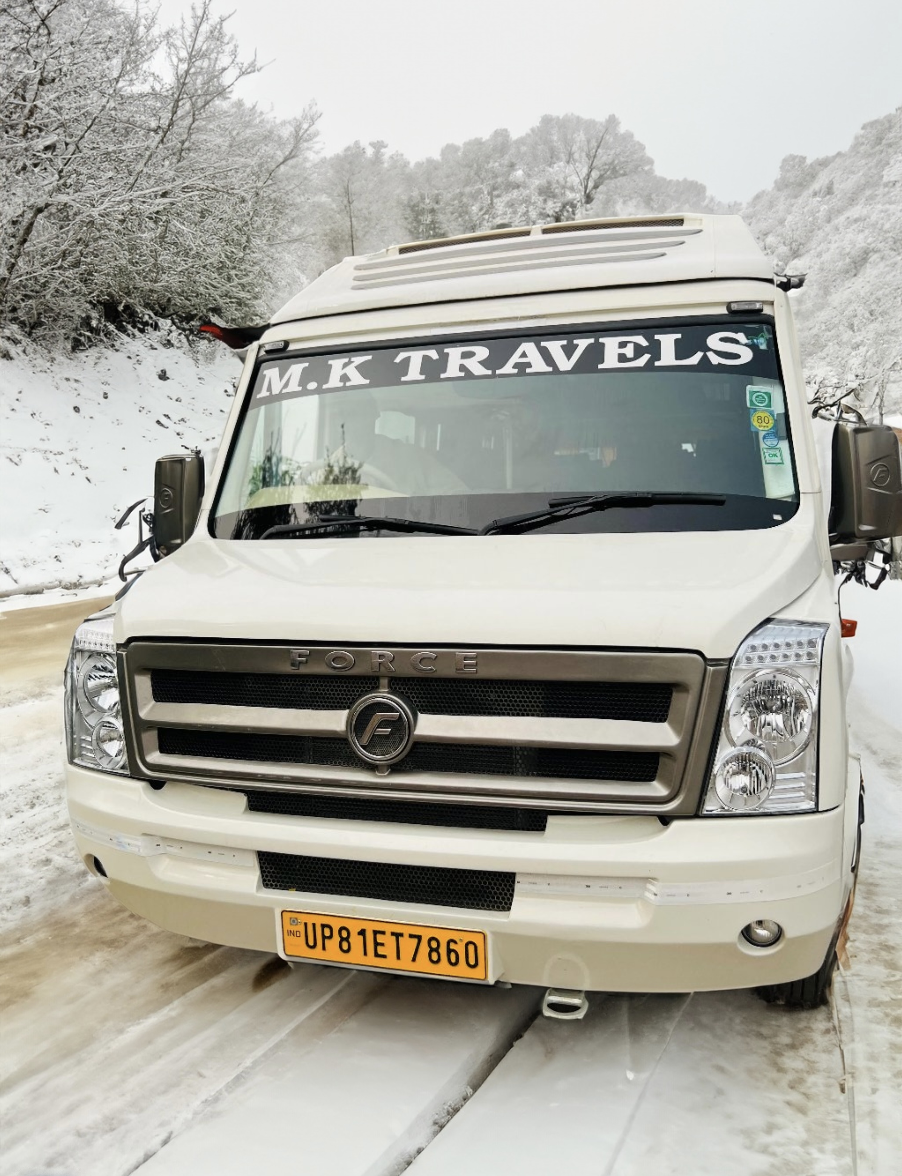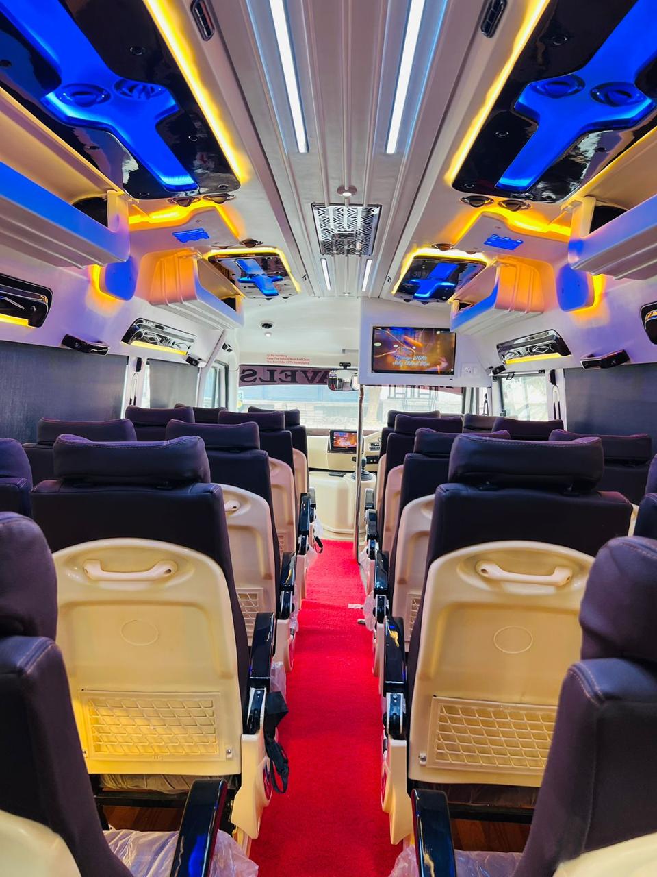 25-seater Brand New Force Traveller: Ideal for small groups, this luxury vehicle combines modern design with advanced amenities, ensuring a stylish and comfortable ride.